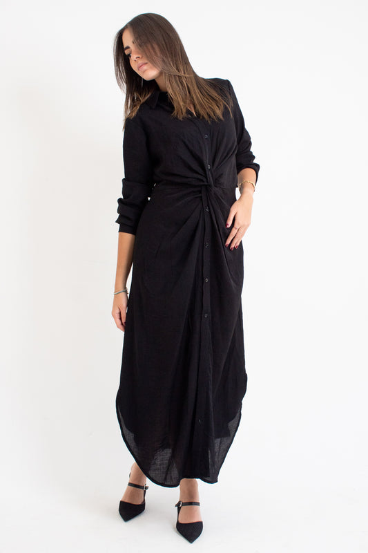 (Soli dress)Black glass (Linen Mixed with Silk)dress