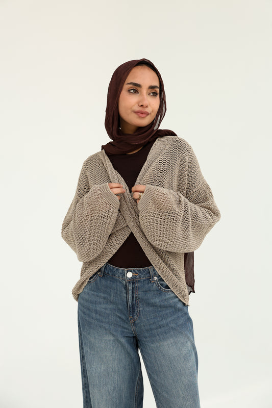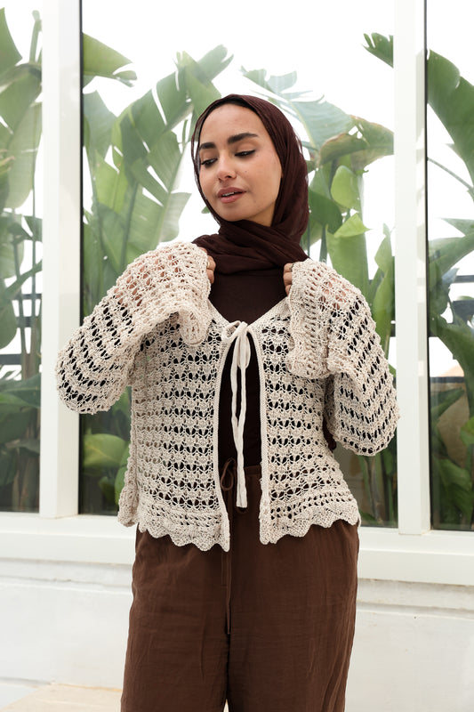 Richelieu lace cardigan in brown كارديجان ريكاما باللون البني