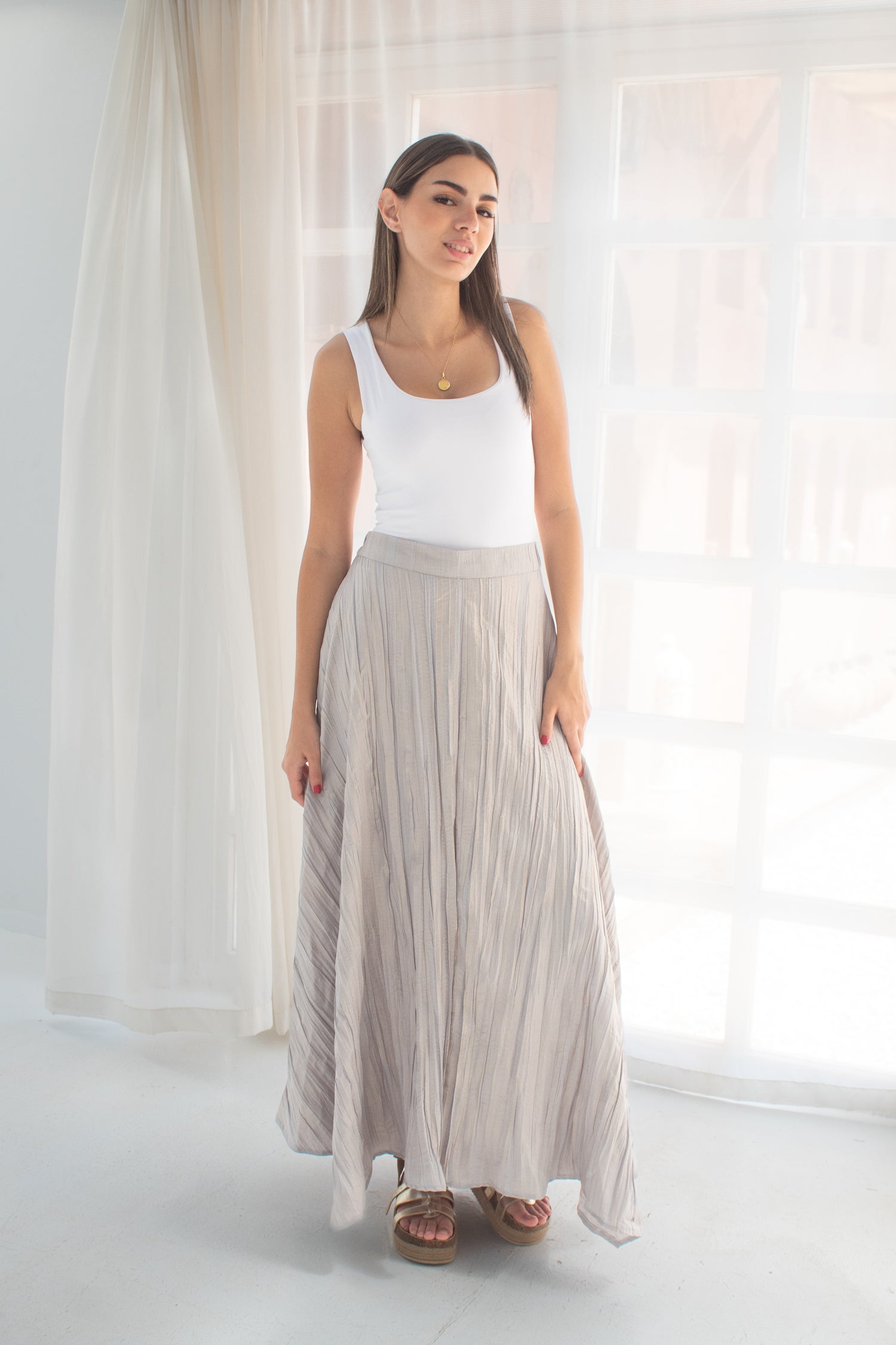 Shimmered crashed cotton jumpsuit in white golden brooch