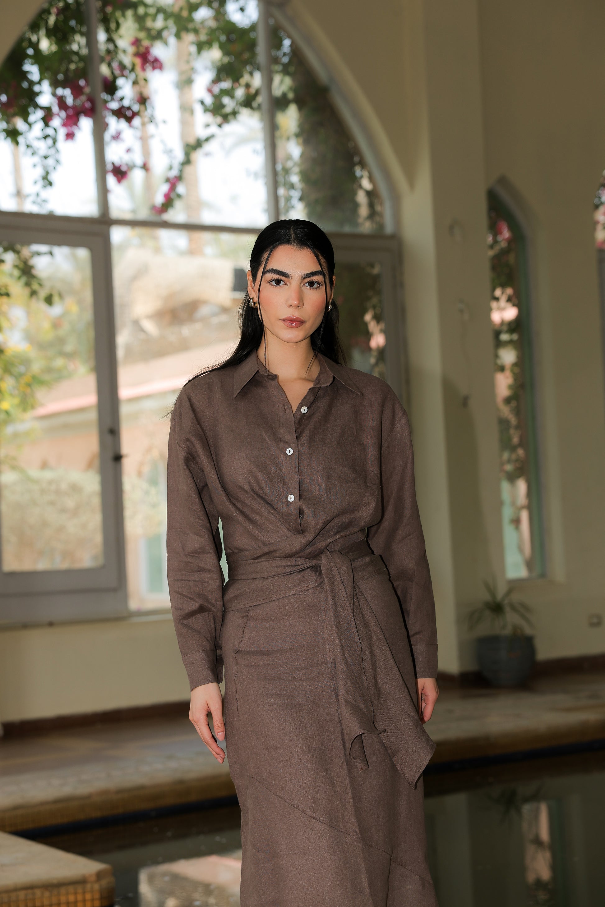 feminine set In chocolate pure linen