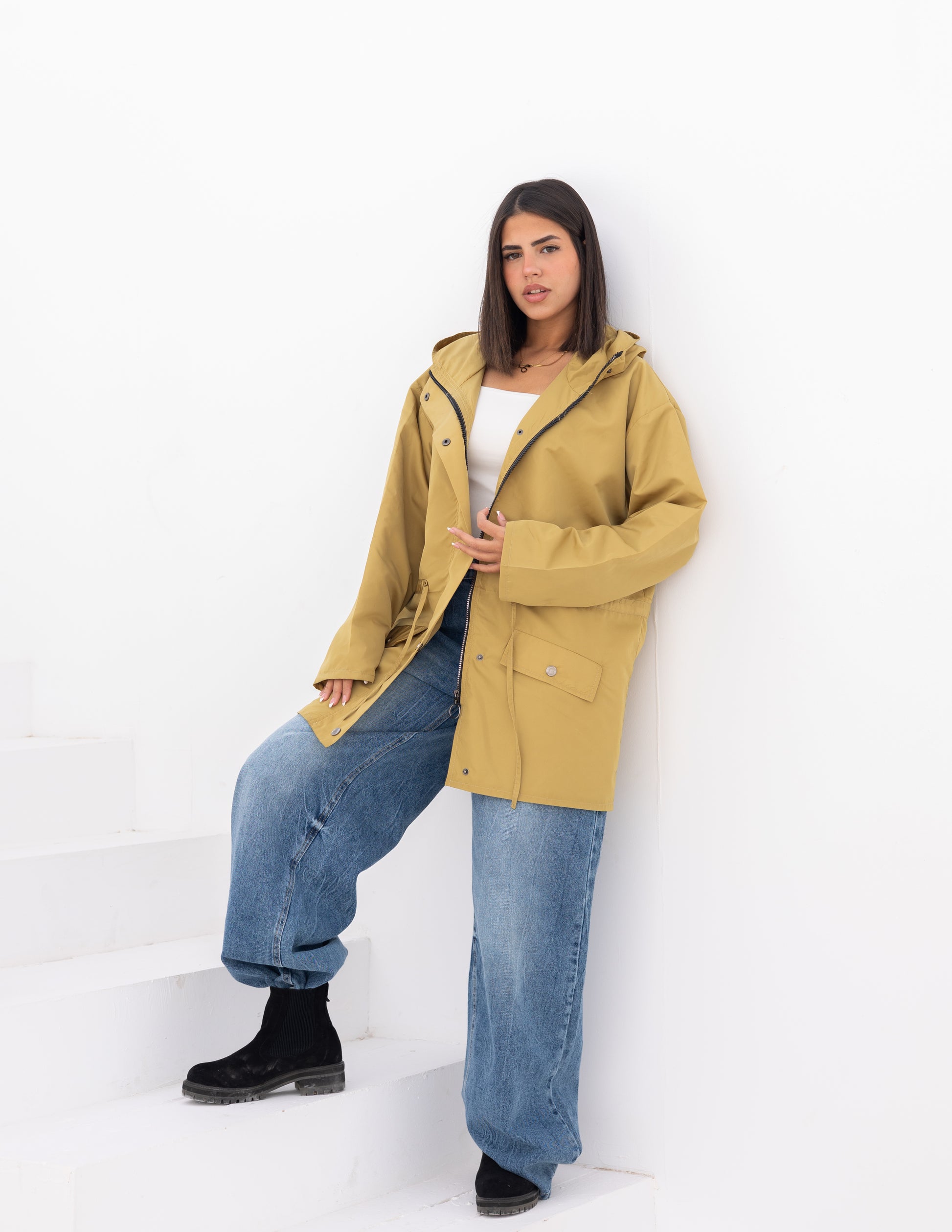 Waterproof jacket in mustard